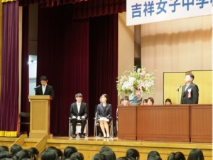 上級生総代による「歓迎のことば」では、代表の生徒が、私たちが充実した毎日を過ごせていることは決して当たり前ではなく、目に見えないところで支えてくれている方々への感謝を忘れずに一歩ずつ進んでいこうと語りかけました。周囲への想いを大切にする吉祥生らしい、誠実なメッセージが会場の空気を優しく包み込みました。