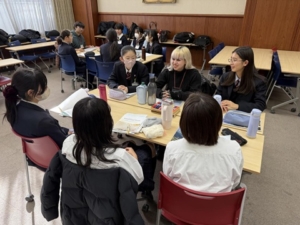 各グループ5人の生徒に対して、留学生のグループリーダーが一人ずつ付き、日本に居ながらにして英語圏の必修科目であるパブリックスピーキングやキャリアプランニングを行う、留学疑似体験ともなる活動でした。留学生達はロールモデルとなりつつ、生徒達を励まし、助言し、ディスカッションや交流活動を行い、あっという間の英語漬けの充実した3日間でした。