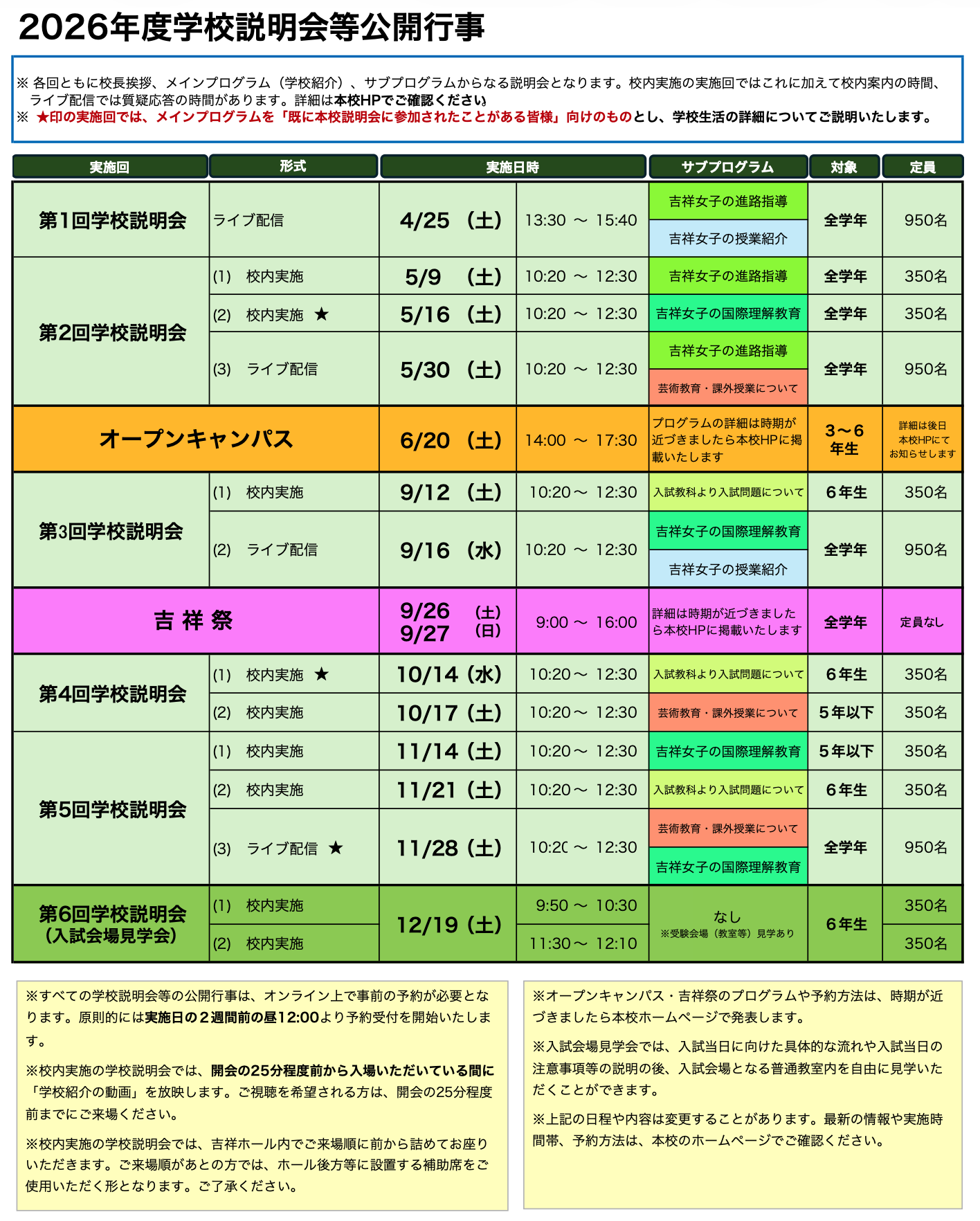 2026年度 「学校説明会」について