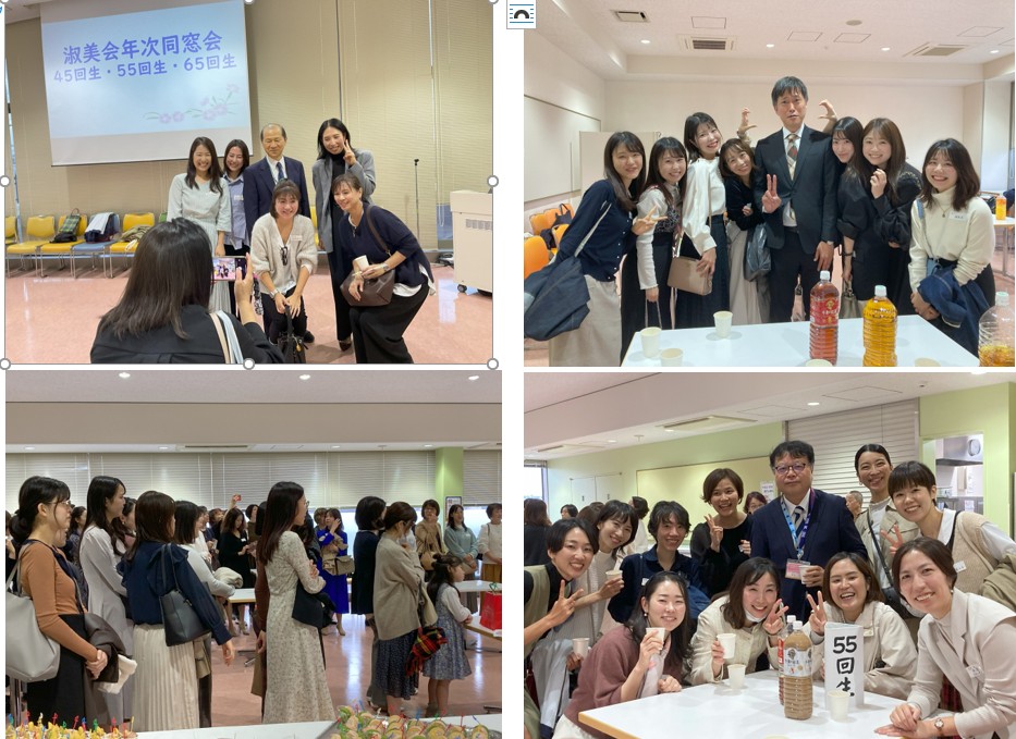 2025年度 第2回年次同窓会を11月15日(土)に開催いたします。 招待回生は46回生(H7年3月卒)・56回生(H17年3月卒)・66回生(H27年3月卒)です。 昨年の第1回年次同窓会では、久しぶりの再会に皆様楽しく過ごされ、ご好評をいただきました。今年も皆様のご参加を心よりお待ちしております。 詳細につきましては、会員専用ホームページをご覧ください。パスワードは会報誌に掲載。ご質問・お問合せは淑美会へメールでお問合せ下さい。