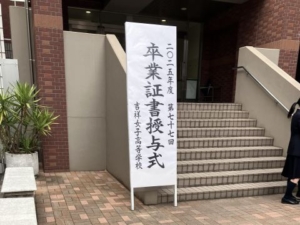 本日、高校卒業式が行われ、生徒一同で高校3年生を見送りました。卒業生の皆さんは、新たな門出に向けて寂しさをにじませながらも、晴れやかな表情で式に臨んでいました。高校1年生の中には、卒業生と握手を交わしたり、笑顔で言葉を交わしたりする姿も見られ、あたたかな交流の様子が印象的でした。